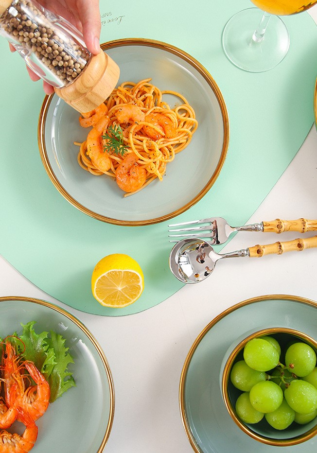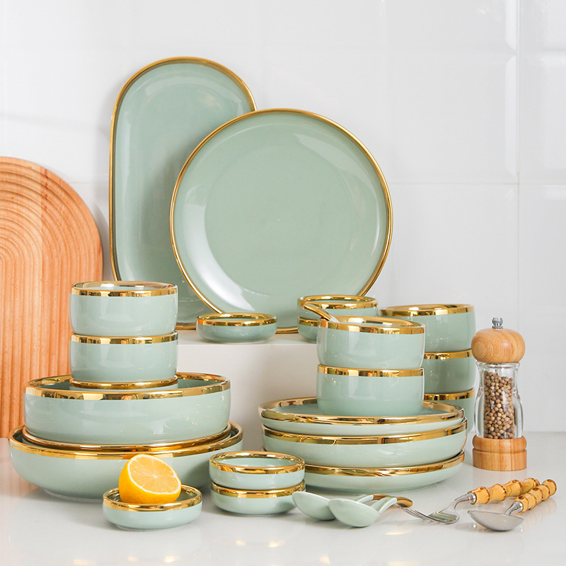 BỘ BÁT ĐĨA 32 MÓN XANH NGỌC VIỀN VÀNG